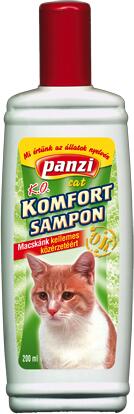 • PANZI Komfort Sampon cicáknak – A macska fénytelen szőre lágy és csillogó lesz. A macska kellemes közérzetéért.